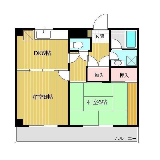 | 間取り | 2DK(DK6 洋8 和6) | 主要採光面 | 東 |